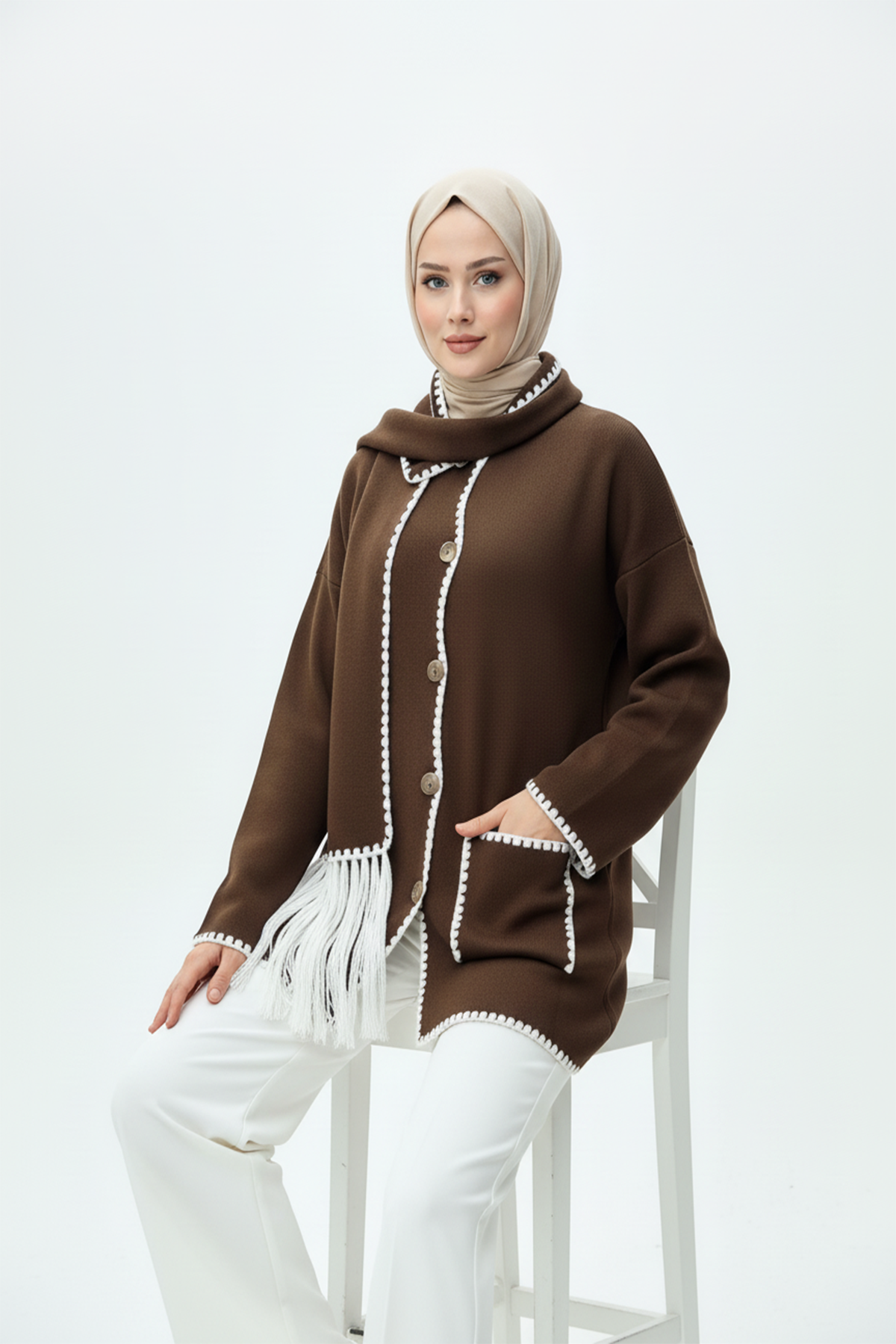 Kadın Nakış Detaylı Atkılı Yumuşak Ceket - Kahverengi, zarif detayları ve sıcak dokusuyla şıklığı konforla buluşturuyor. İnce nakış işlemeleri, cekete feminen bir zarafet katarken, yumuşak kumaşı gün boyu konforlu bir kullanım sağlar. Uyumlu atkı detayı, hem tarzınıza özgün bir dokunuş yapar hem de soğuk havalarda ekstra sıcaklık sunar. Kahverenginin doğal ve sofistike tonuyla, günlük kombinlerde ya da şehir stilinde fark yaratmak isteyen kadınlar için mükemmel bir seçim!