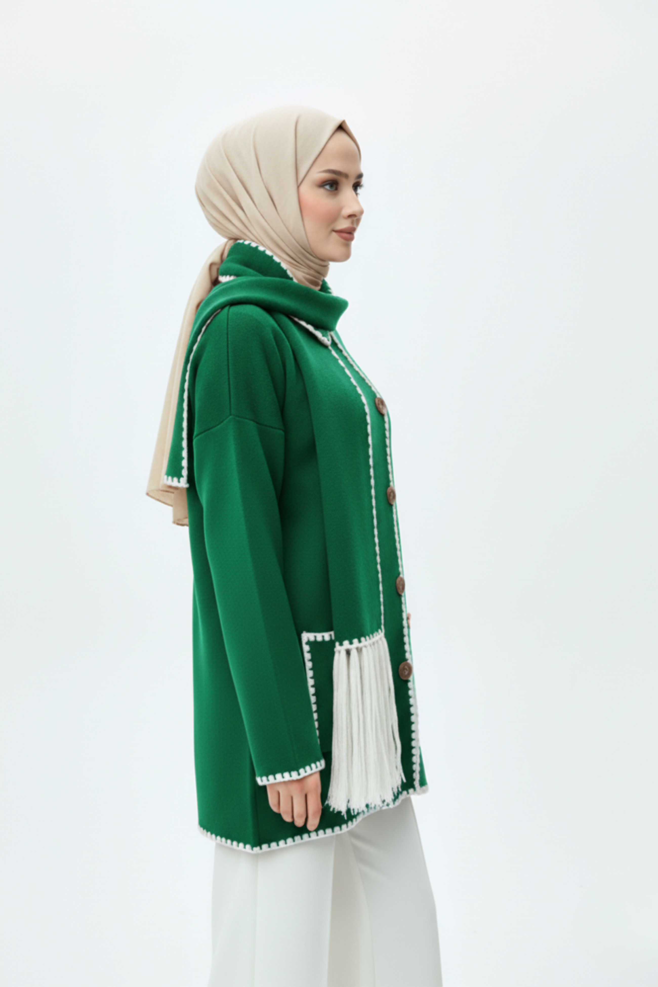 Kadın Nakış Detaylı Atkılı Yumuşak Ceket - Yeşil, doğal zarafeti ve modern detaylarıyla sezonun öne çıkan parçası! Göz alıcı nakış işlemeleri, tasarıma zarif bir karakter kazandırırken, yumuşacık dokusu sıcak ve konforlu bir kullanım sunar. Atkı detayı, hem şıklığı tamamlar hem de pratik bir dokunuş sağlar. Yeşilin canlı ve enerjik tonu, stilinize tazelik ve sofistike bir hava katar. Gündüzden geceye her kombine kolayca uyum sağlayacak bu ceket, tarz sahibi kadınların favorisi olacak!