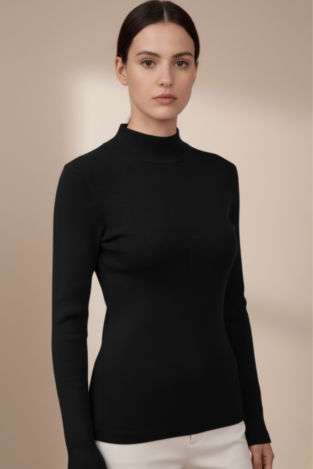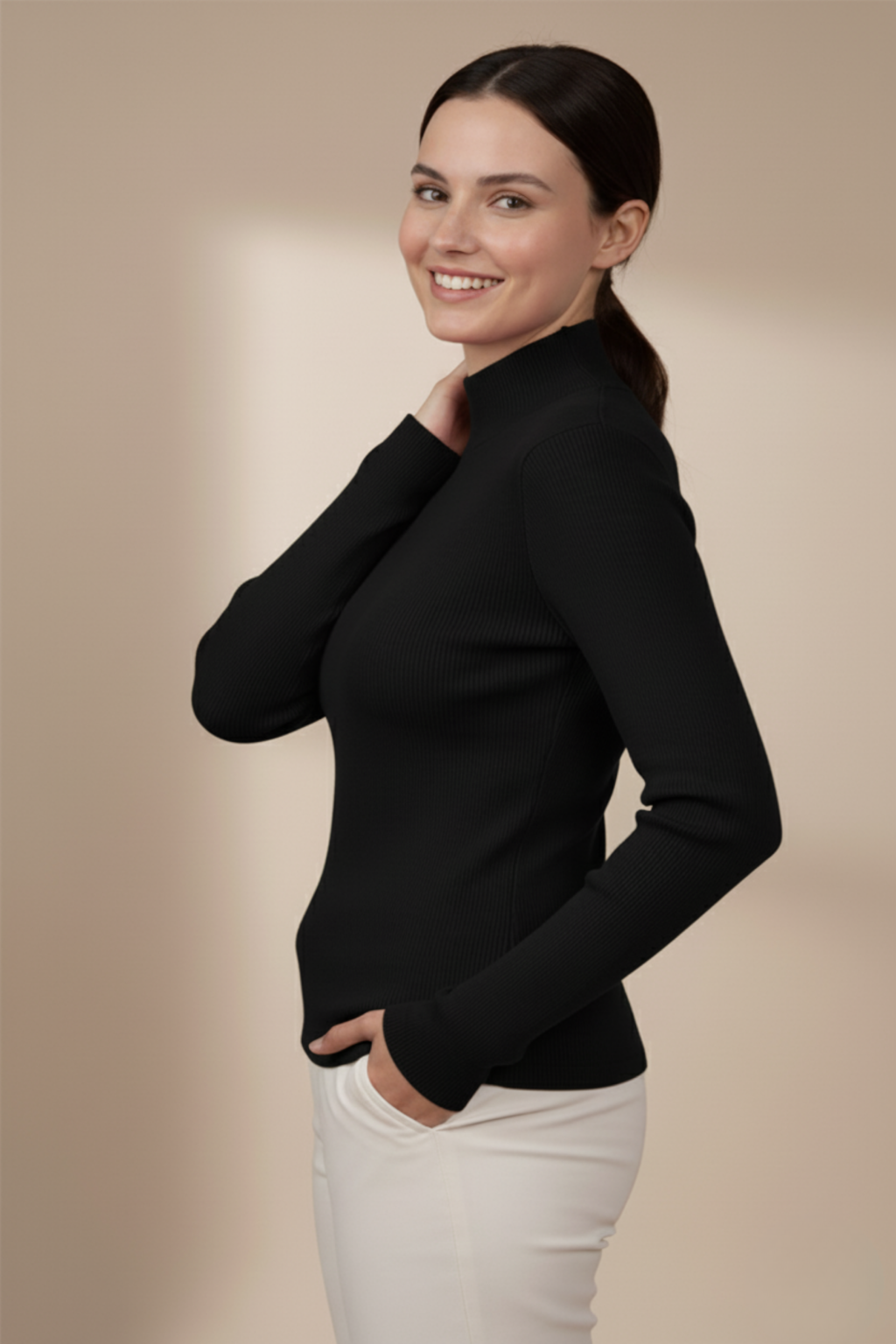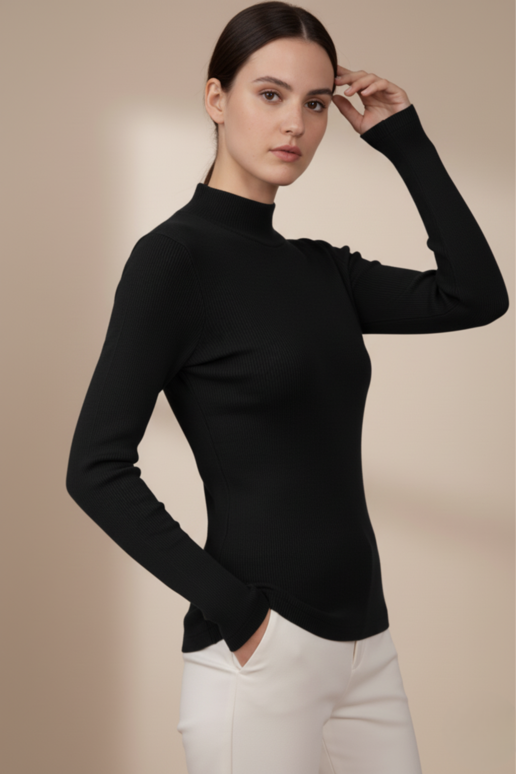Kadın Siyah Balıkçı Yaka Bluz, şıklığın en sade ve etkileyici halini sunuyor. Siyah rengin güçlü ve zamansız duruşu, her stile uyum sağlarken, balıkçı yaka detayı asil bir görünüm kazandırır. Vücudu zarifçe saran esnek kumaşı, hem rahatlık hem de zarafet sunar. İster klasik bir pantolonla ister etekle kombinleyin; bu bluz her ortamda stilinizi bir adım öne taşır. Minimal, şık ve her zaman moda!