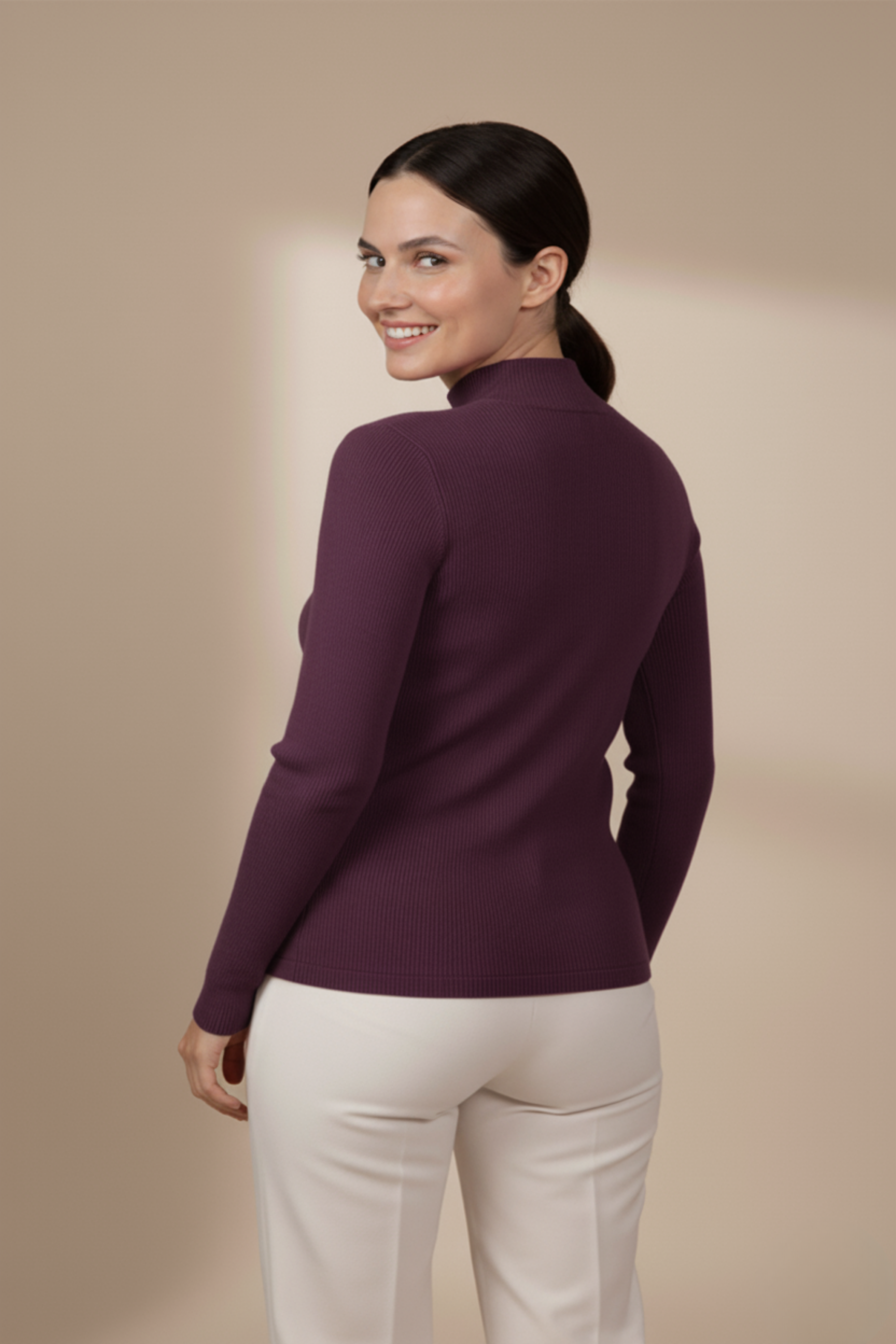 Bordo Tek Omuz Uzun Kollu Kaşkorse Kadın Bluz