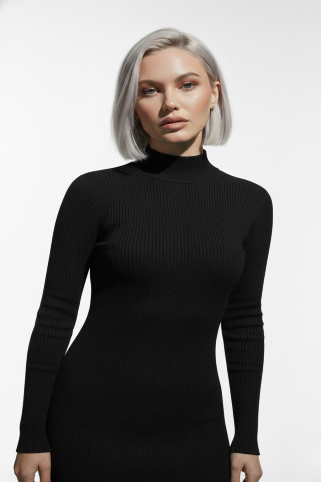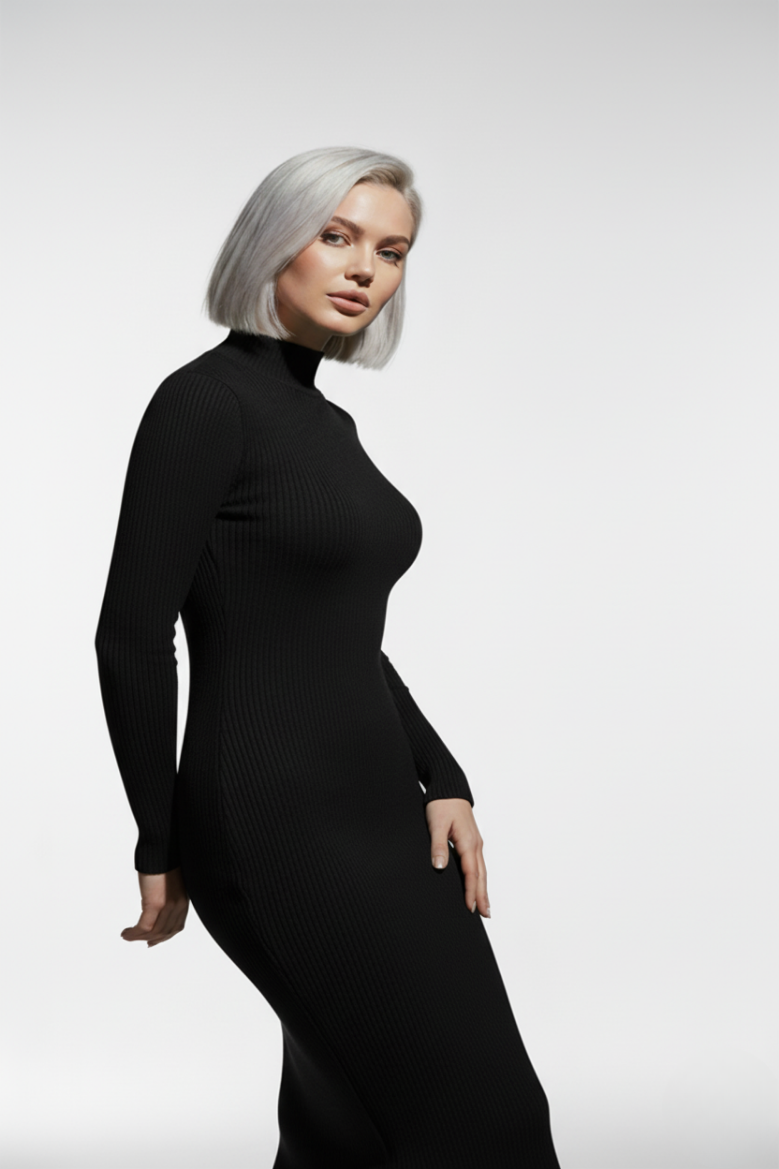 Kadın Balıkçı Yaka Siyah Uzun Elbise, zarafetin, asaleti ve sade şıklığın mükemmel birleşimi! Balıkçı yaka detayı, modern ve sofistike bir duruş kazandırırken, uzun kesimiyle zarif bir siluet oluşturur. Siyah rengin zamansız asaleti, hem günlük kombinlerde hem de özel davetlerde güçlü bir tarz ortaya koyar. Yumuşak kumaşıyla konforu, sade tasarımıyla da zarafeti bir araya getiren bu elbise, stil sahibi kadınların favorisi olacak!