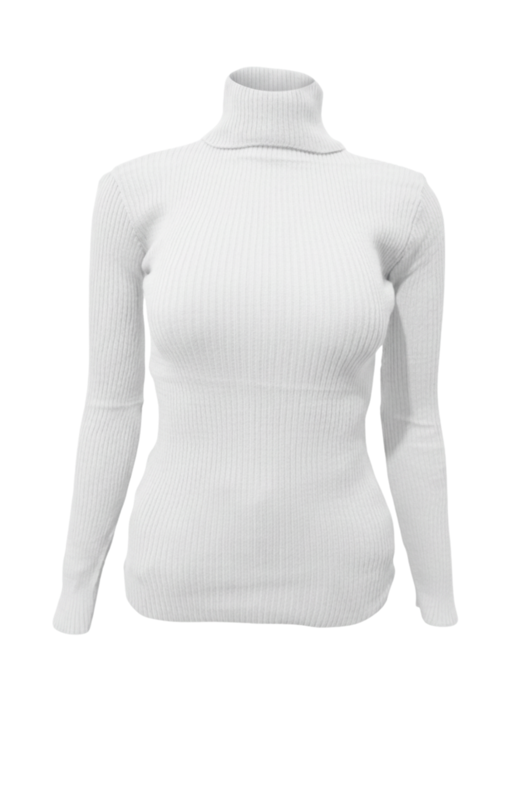 Kadın beyaz boğazlı triko kazak, zarif ve temiz görünümüyle şıklığı kombinlerinize taşır. İnce dokusu sayesinde rahat kullanım sağlar.