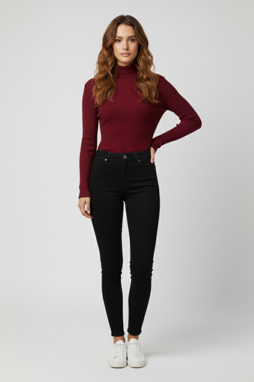 Kadın bordo boğazlı triko kazak, klasik boğazlı tasarımı ve yumuşak dokusuyla şıklığı ve konforu bir arada sunar. Gardırobunuzun temel parçalarından biri olacak.
