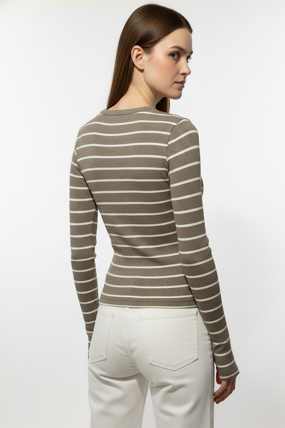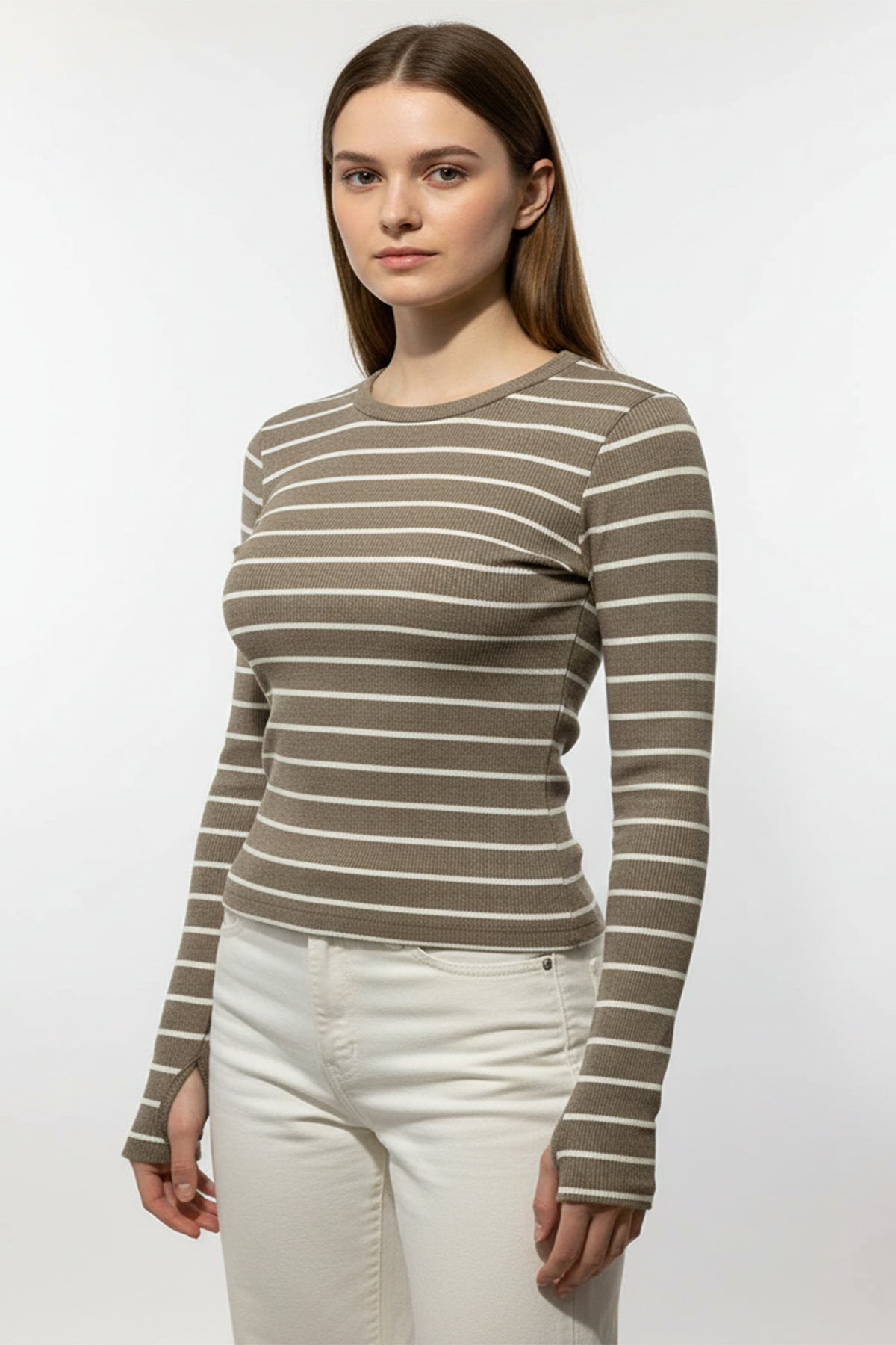 Doğal tonları, rahat kalıbı ve trend detaylarıyla Kadın Çizgili Parmak Geçmeli Bluz - Kahverengi, gardırobunun en sevilen parçalarından biri olacak.