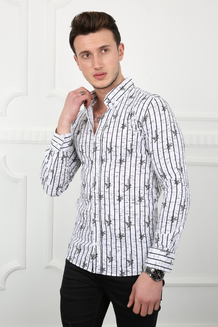 • Erkek günlük dik çizgili desenli gömlek şık ve modern bir görünüm sunar;