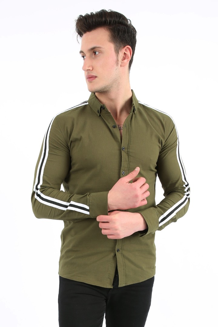 · Kollarındaki çizgili detaylar gömleğe şık bir dokunuş katar;