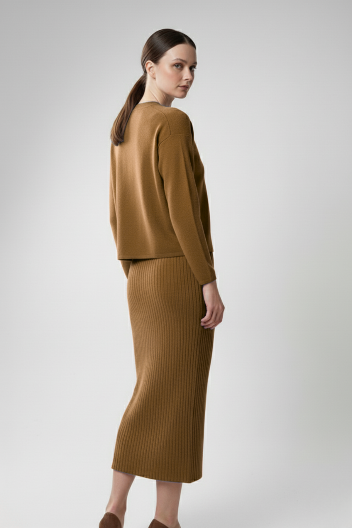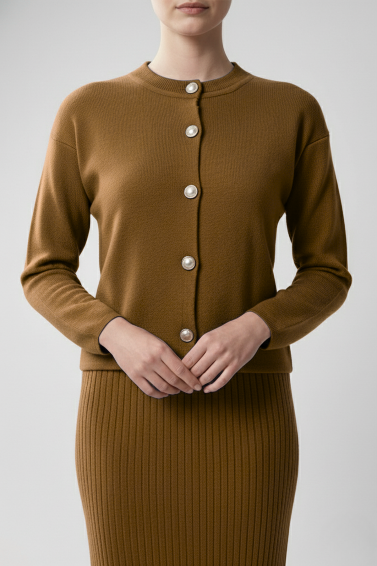 Kadın Hırka Elbise İkili Takım - Kahverengi, sıcak tonları ve zarif duruşuyla doğal şıklığın en zarif halini sunuyor. Kahverenginin toprak tonları, hem klasik hem de modern kombinlere uyum sağlarken, triko kumaşın yumuşak dokusu konforu ön plana çıkarır. Uzun hırka ve uyumlu elbise tasarımı, kusursuz bir bütünlük yaratarak zarif bir siluet oluşturur. Günlük kullanımdan özel buluşmalara kadar her ortamda sofistike bir görünüm isteyen kadınlar için mükemmel bir seçim!