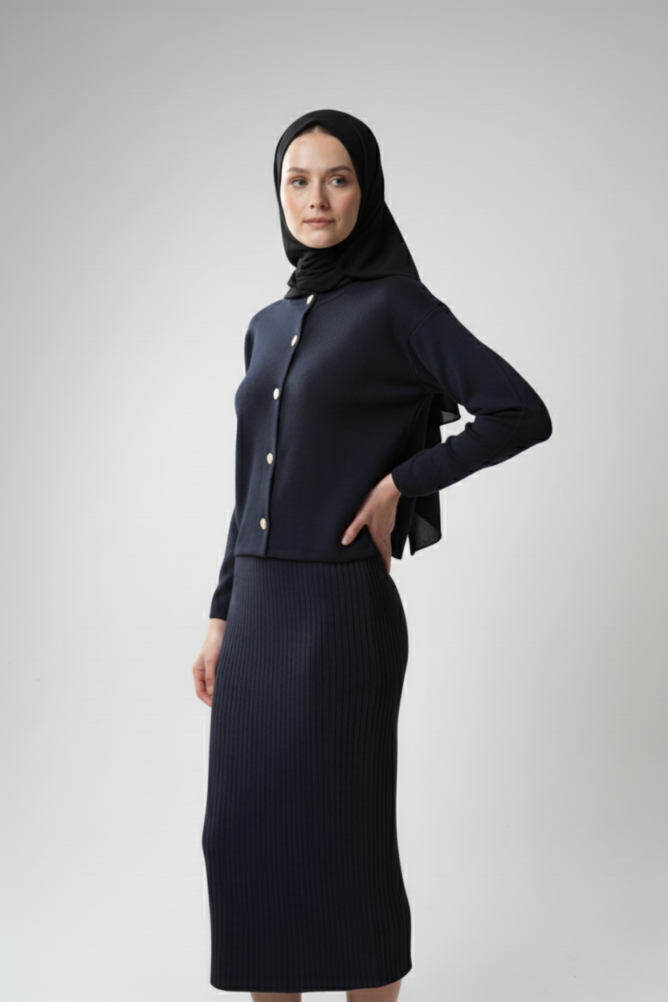Kadın Hırka Elbise İkili Takım - Lacivert