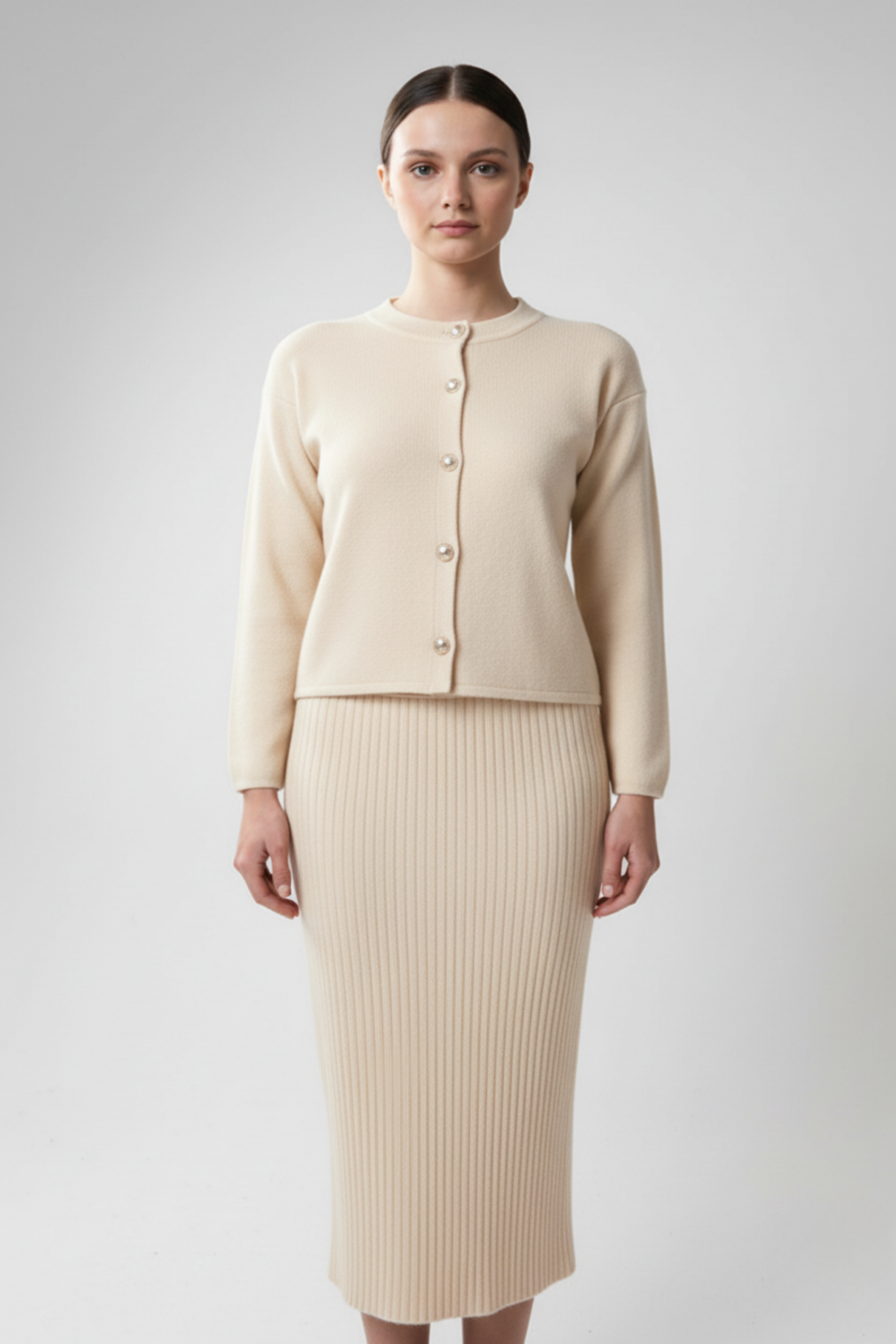 Kadın Hırka Elbise İkili Takım - Krem, sade zarafetiyle her dönemin favorisi olmaya aday! Krem rengin soft ve zarif tonları, doğal bir ışıltı kazandırırken, triko dokusu yumuşacık bir konfor sunar. Uzun hırka ve uyumlu elbise tasarımı, zarif bir bütünlük oluşturarak hem günlük hem de özel anlarda kusursuz bir görünüm sağlar. Minimal çizgileriyle öne çıkan bu takım, sade ama etkileyici şıklığın en güzel hali!