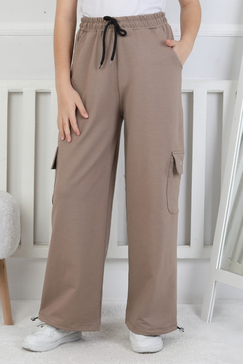 İki İplik Baskılı Kargo Çepli Kız Çocuk Eşofman Altı