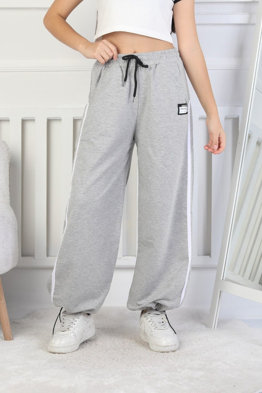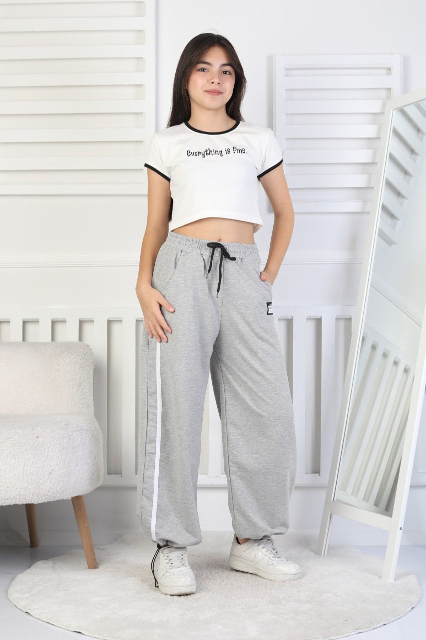 İki İplik Çizgili Kız Çocuk Eşofman Altı