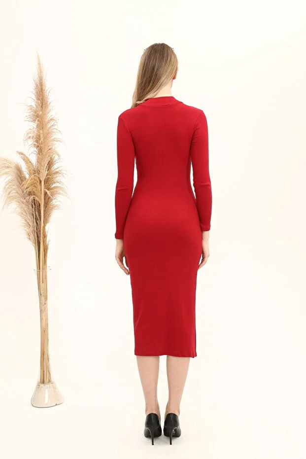 Zarafeti ve modern çizgileri bir araya getiren Kadın Bordo Yarım Balıkçı Tek Taraf Yırtmaçlı Elbise, şıklığından ödün vermeyen kadınların favorisi olmaya aday. Sezonun dikkat çeken bordo tonu, asil duruşu ile stilinizi ön plana çıkarırken, yarım balıkçı yaka detayı şık ve zarif bir görünüm sunar.