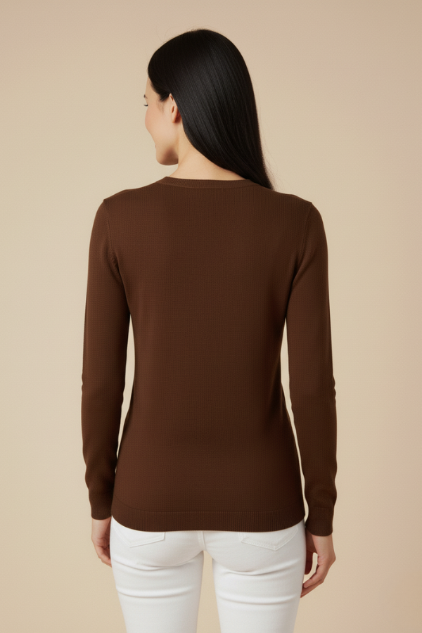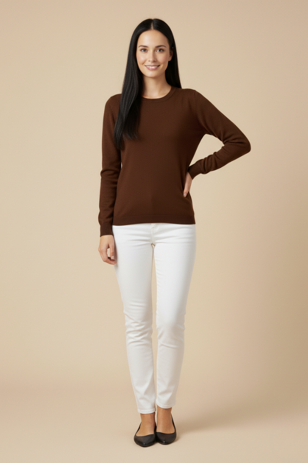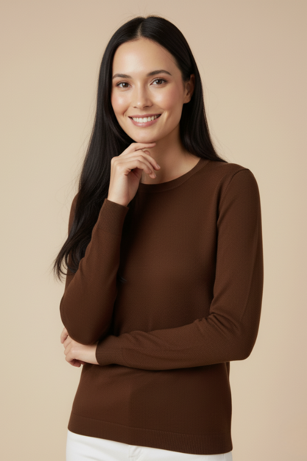 Kadın Kahverengi Triko Yuvarlak Yaka Kazak: Doğal Sıcaklık ve Klasik Şıklık