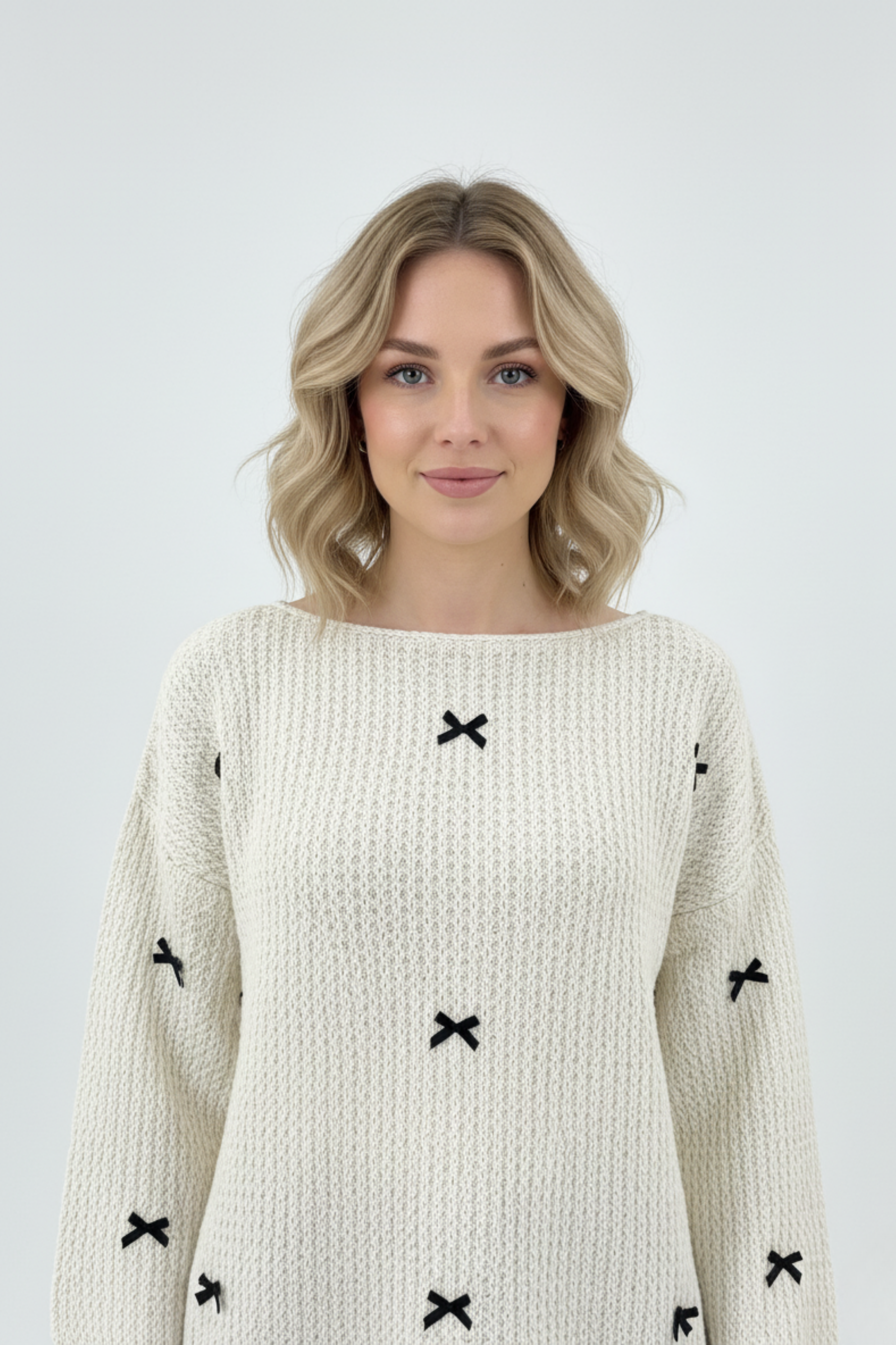 Bu sezonun en zarif ve göz alıcı parçasıyla tanışın: Kadın Kurdelalı Ajurlu Triko Beyaz Kazak.