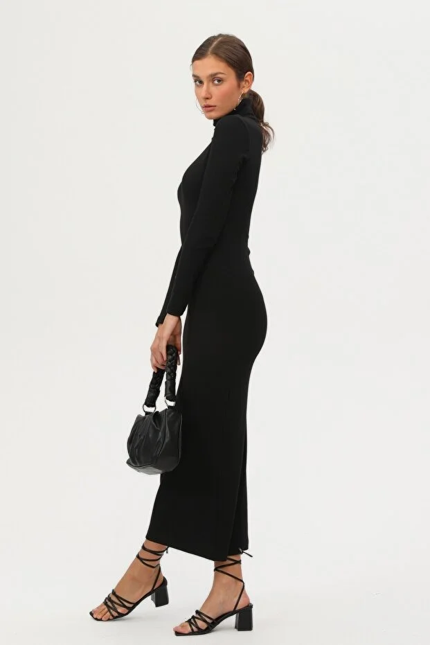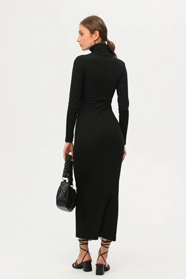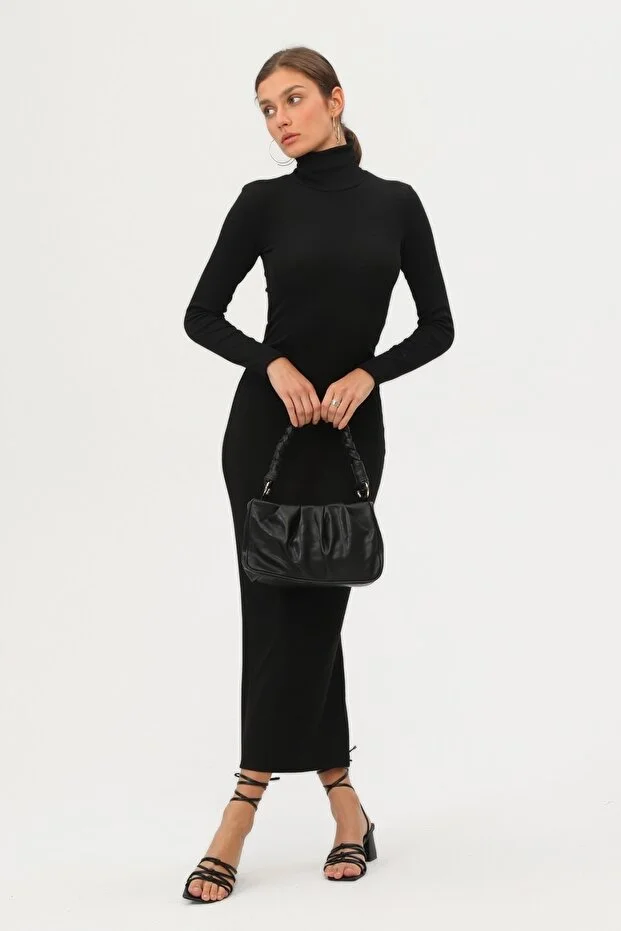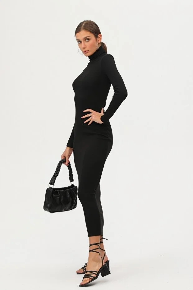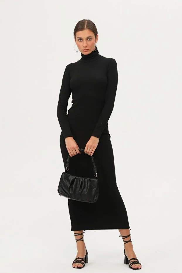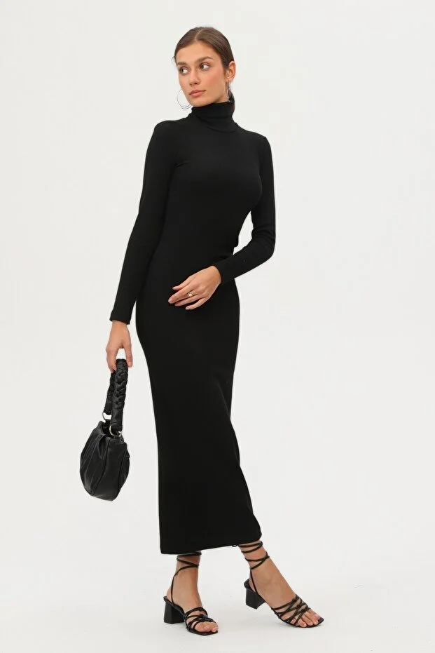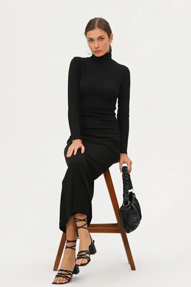 Şıklığı ve konforu bir arada sunan bu uzun kollu siyah elbise, mevsim geçişlerinde ve serin havalarda zarif görünümünüzü korumanız için ideal bir tercihtir. Düz ve sade deseni ile her ortama uyum sağlayan bu parça, minimal tarzdan vazgeçmeyenler için mükemmel bir seçenektir.