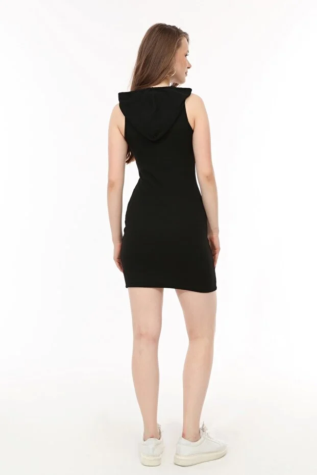 Rahatlığı ve şıklığı aynı anda sunan siyah kapüşonlu örme elbise, günlük stiline modern ve sportif bir dokunuş katmak isteyenler için ideal bir seçimdir. Slim fit kesimi, vücut hatlarını zarifçe vurgulayarak şık ve feminen bir siluet oluşturur.