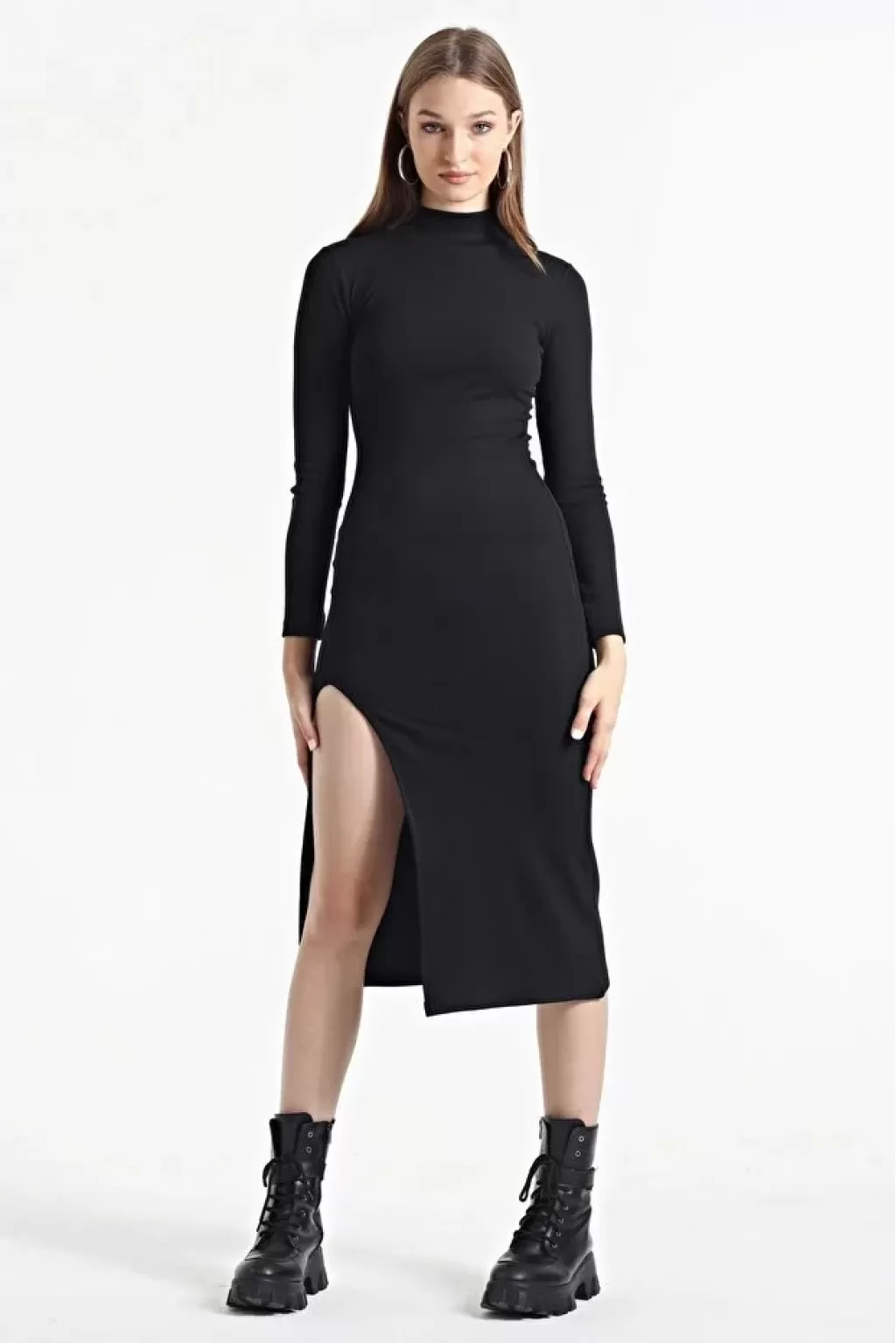 Modern ve dinamik tarzı destekleyen uzun kollu yarı balıkçı yaka elbise, mevsim geçişlerinde ve serin havalarda şıklık ile konforu bir arada sunar. Orta kalınlıktaki poliviskon kumaşı sayesinde ne terletir ne de üşütür, gün boyu rahatlık sağlar.