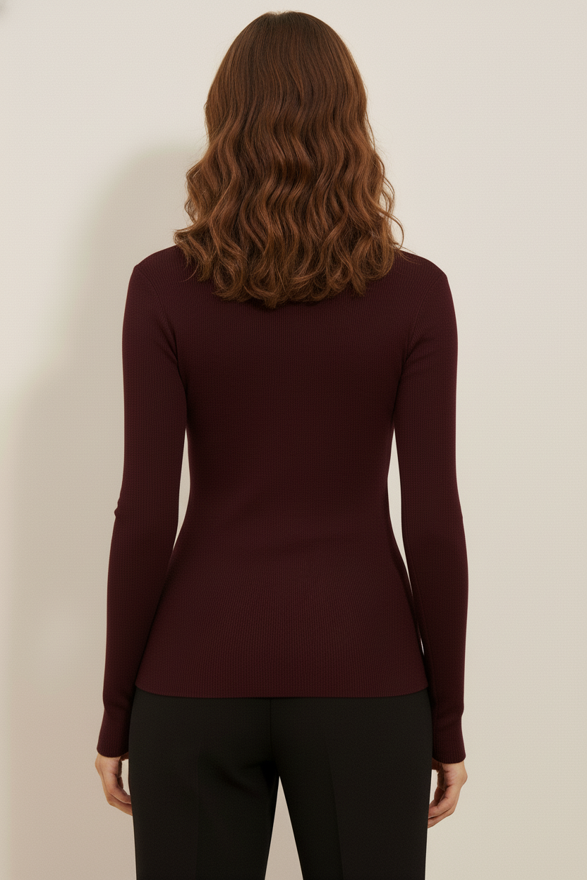 Yarım balıkçı yaka formu ve cut out (kesik) detayı, bluzun sade çizgilerine modern bir dokunuş katar. Boncuk işleme detaylarıyla zenginleştirilmiş bu tasarım, hem casual kombinlerde hem de özel günlerde tarzınıza sofistike bir hava kazandırır.