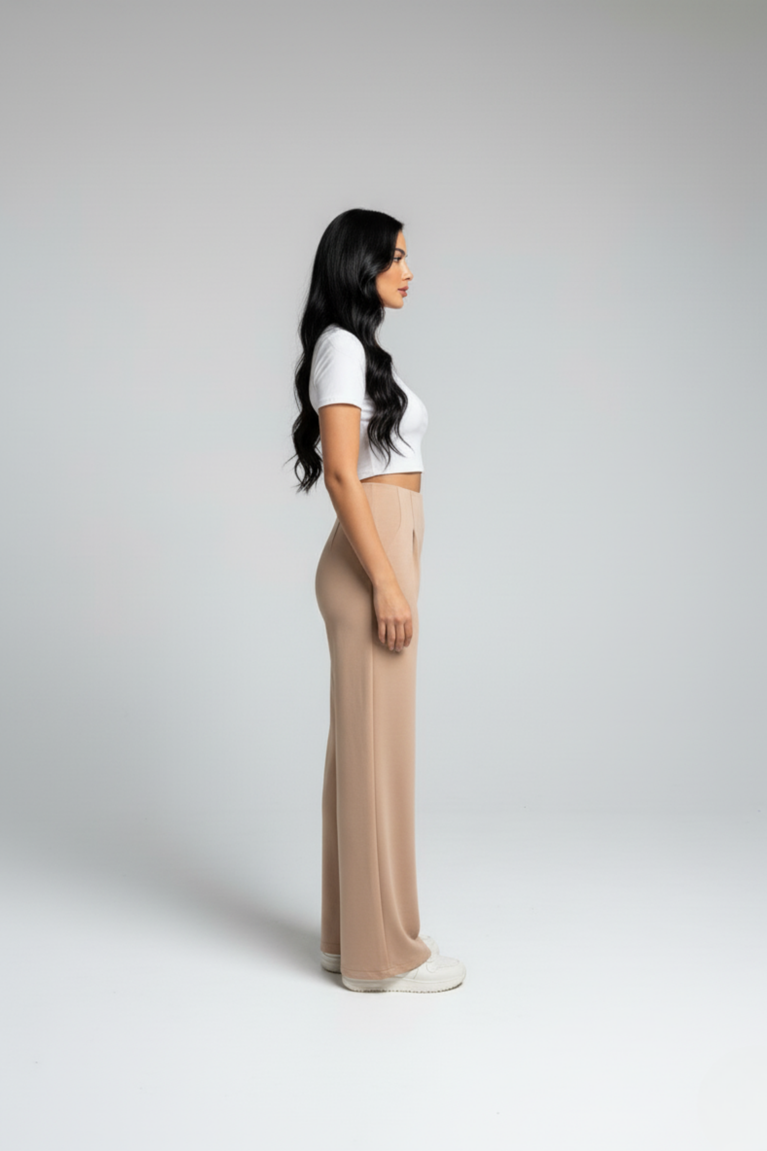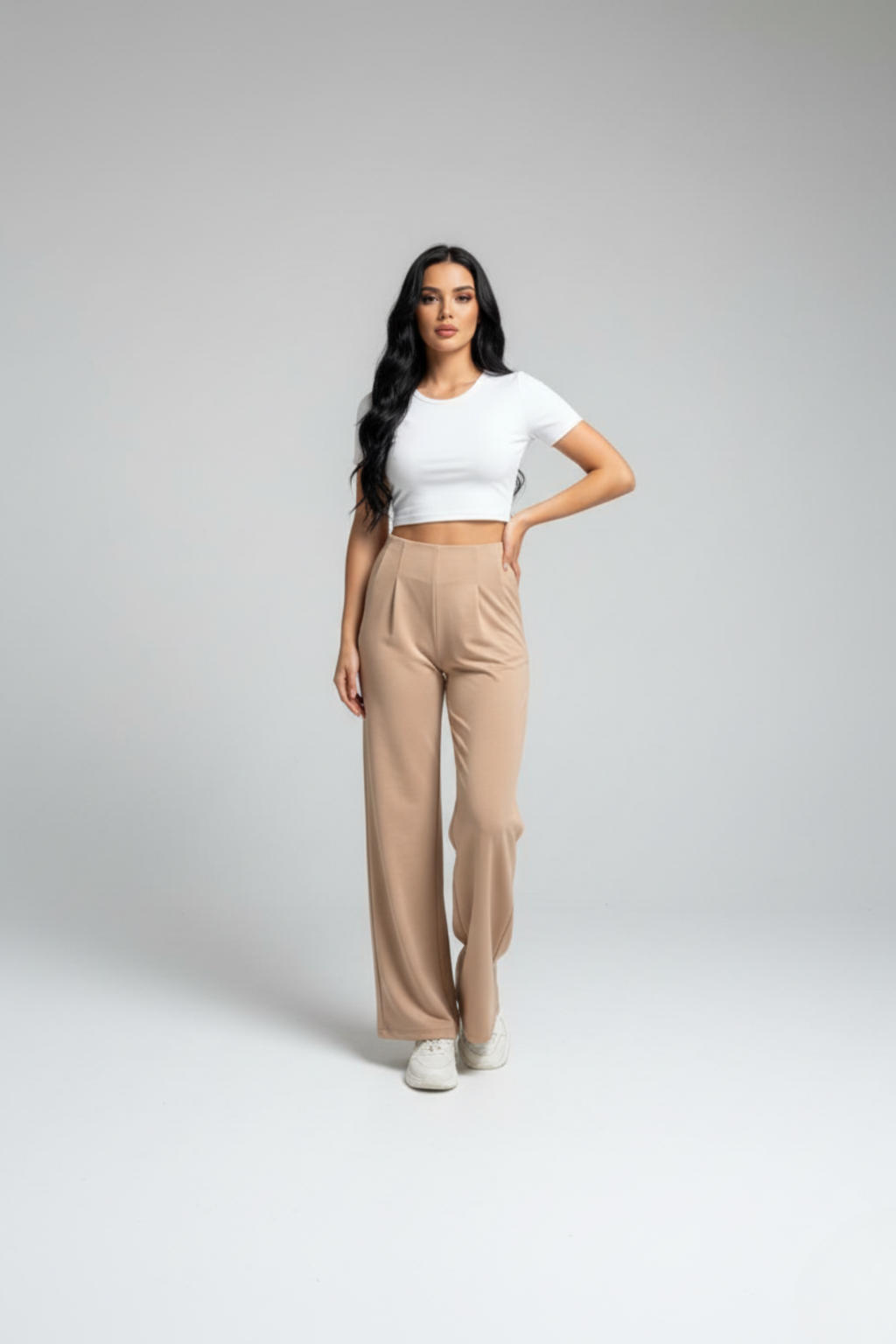 Zarif ve modern bir stil arayan kadınlar için tasarlanmış Kadın Yüksek Bel Pensli Bol Paça Krep Palazzo Pantolon – Bej, gardırobunuzun şık ve rahat parçalarından biridir. Yüksek bel kesimi, bel bölgesini nazikçe kavrayarak gün boyu konfor sağlar. Bol paça ve palazzo kesimi, bacak boyunu optik olarak uzatırken hareket özgürlüğünüzü kısıtlamaz.