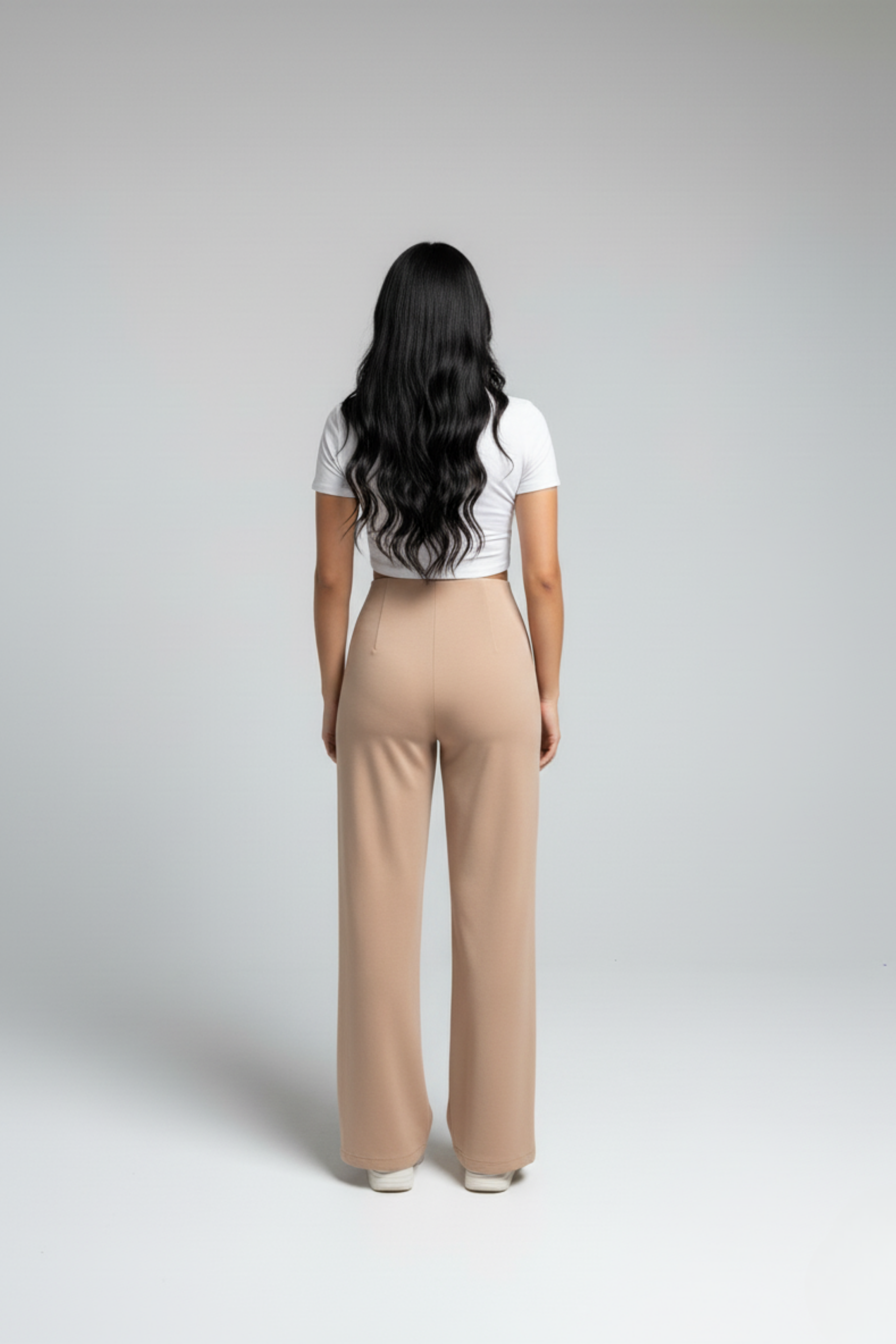 Ön pens detayları, pantolona düzenli ve şık bir görünüm kazandırır. Hafif ve esnek krep kumaşı, dökümlü yapısıyla hem rahat hem de zarif bir siluet sunar. Cepsiz ve kemersiz minimalist tasarımı, sade ama modern bir duruş elde etmenizi sağlar. Baskısız ve düz rengi sayesinde her türlü üst giyimle kolayca kombinlenebilir.
