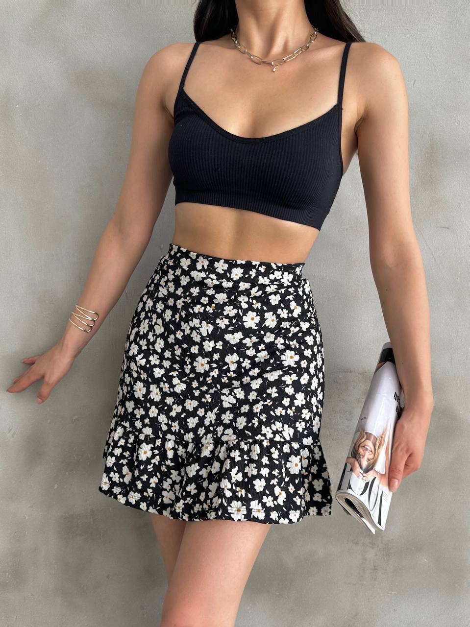 Şıklığı ve rahatlığı bir arada sunan siyah çiçek desenli mini şort etek, zamansız tarzıyla dolabınızın favorisi olacak. İç kısmındaki şort detayı sayesinde hareket özgürlüğü sağlar, dış kısmındaki etek formu ise zarif bir görünüm kazandırır. Akıcı yapısı ve modern kesimiyle gün boyu konforlu bir kullanım sunar.