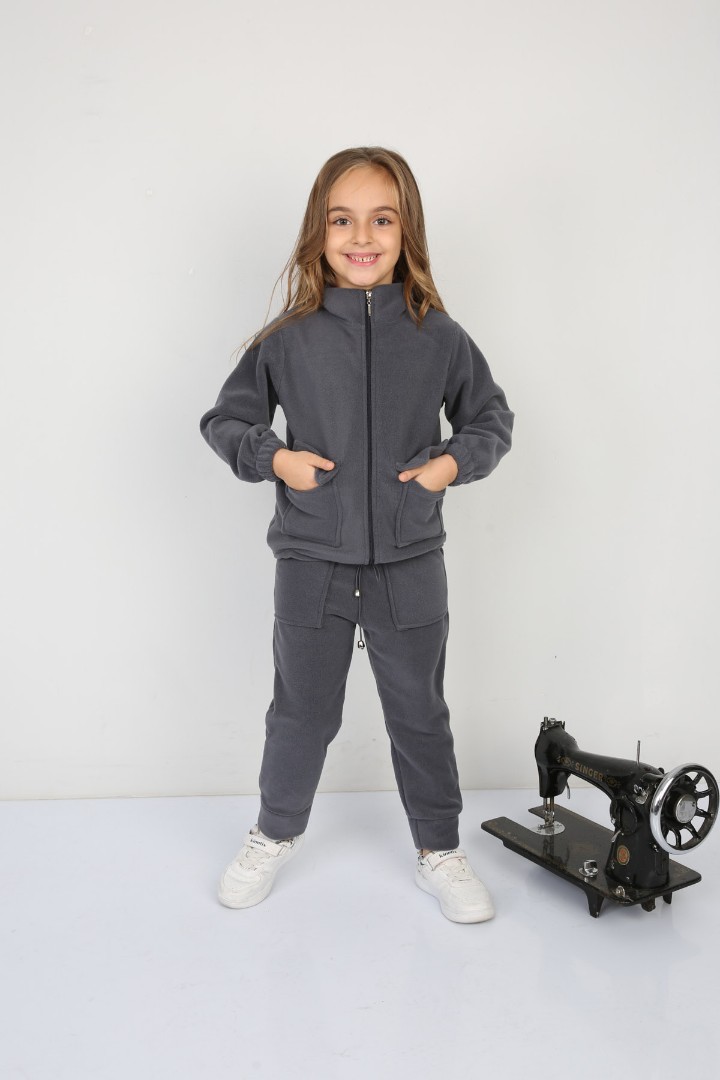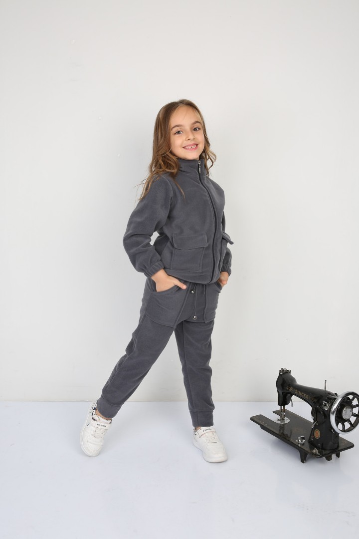 Tıraşlı Polar Lastik Bağcıklı Çift Cep Günlük Kız Çocuk Takım