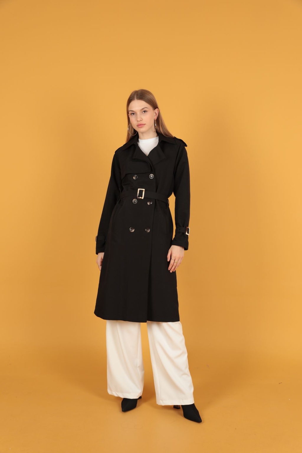 Tokalı Kadın Siyah Trençkot – Modern, Şık ve Güçlü Bir Siluet