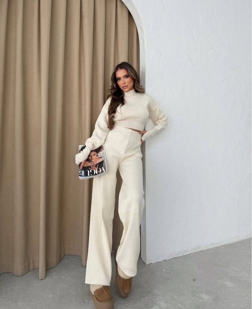 Triko Krem Pantolon ve Parmak Geçmeli Kazak İkili Takım, sade şıklığın ve zarafetin en modern hali! Yumuşak triko kumaşı, gün boyu konfor ve esneklik sunarken, parmak geçmeli kazak detayı sportif ve şık bir dokunuş kazandırır. Krem tonunun zarif ışıltısı, kombinlerinize sofistike bir hava katar. Hem günlük tarzınızda hem de şehir şıklığında kolayca tercih edebileceğiniz bu ikili takım, konforu ve stil sahibi görünümü bir araya getiriyor. Gardırobunuzun yeni favorisi olmaya aday!