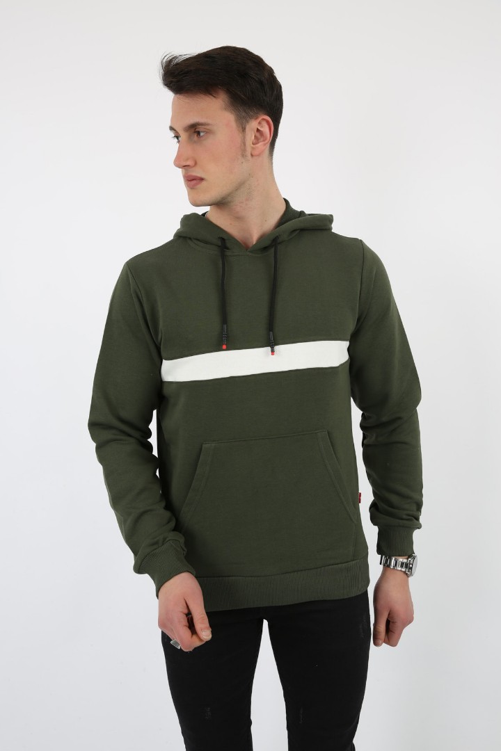 · Üç iplik kapşonlu kalın çizgili kanguru cepli erkek günlük sweatshirt soğuk havalar için idealdir;