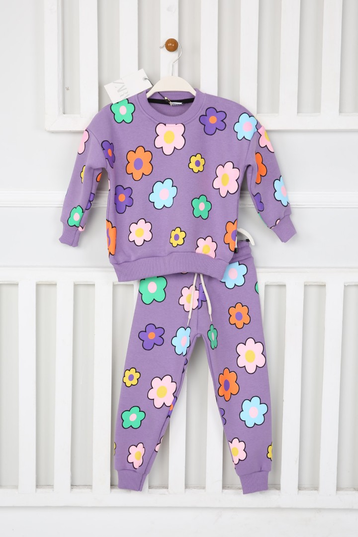 · Üç iplik şardonlu kız çocuk günlük takım, sıcak ve konforlu kullanım sunar;