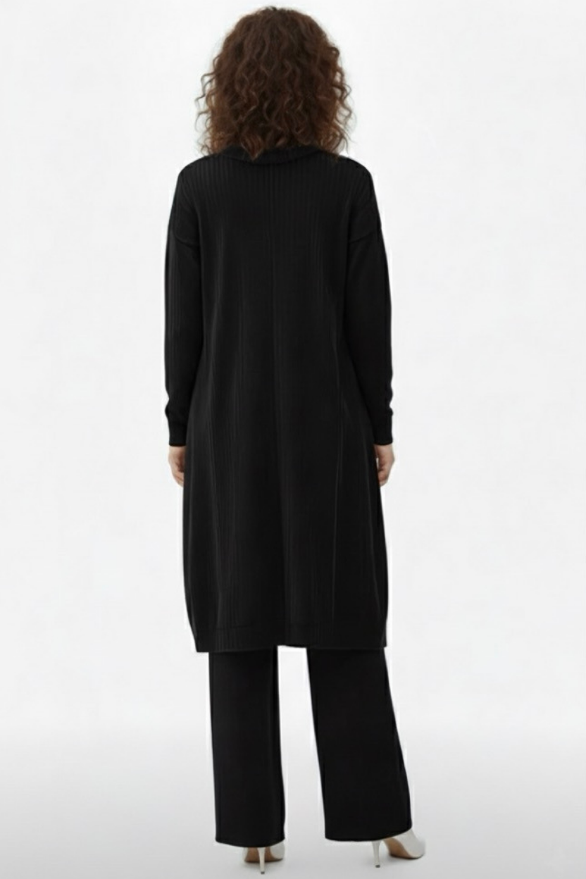 Triko Siyah Kazak ve Fitilli Elbise İkili Takım