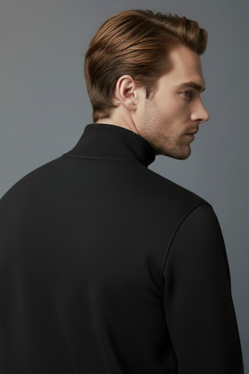 Unisex Kışlık Siyah Yarım Fermuarlı Dik Yaka 2 İplik Sweatshirt