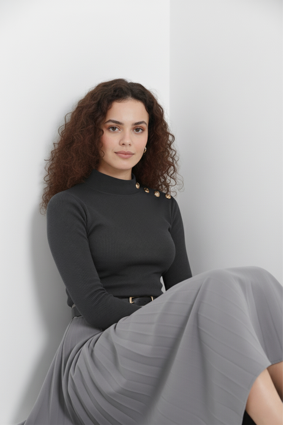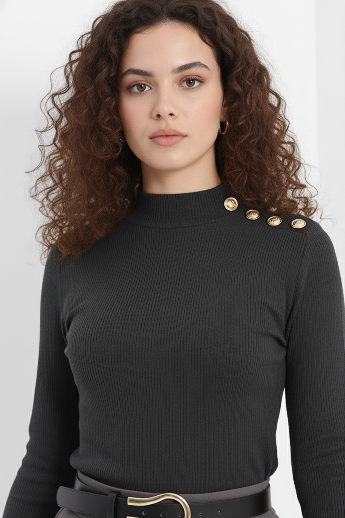 Şıklık ve konforu bir arada sunan Gold Düğmeli Balıkçı Yaka Fitilli Kaşkorse Bluz, gardırobunuzun vazgeçilmez parçalarından biri olmaya aday!
