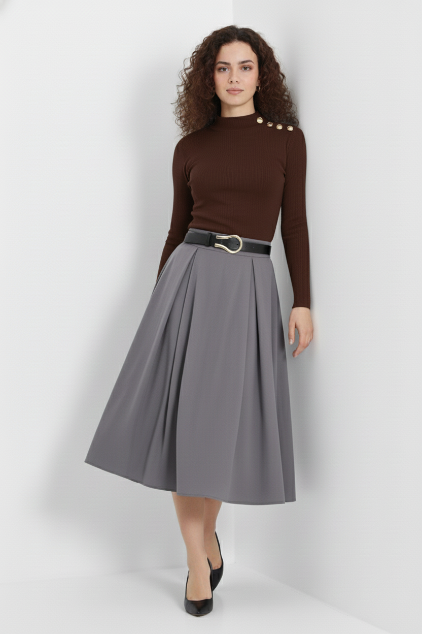 %95 pamuk içeriği ile cildinize nefes aldırırken, %5 likra oranı sayesinde esnek bir form sunar. Fitilli örme kumaşıyla vücut hatlarını nazikçe sarar, slim kalıbı sayesinde zarif bir siluet oluşturur.