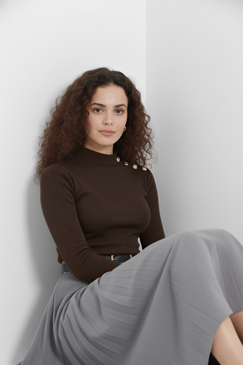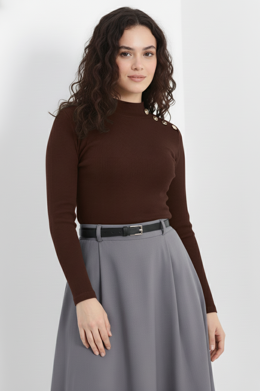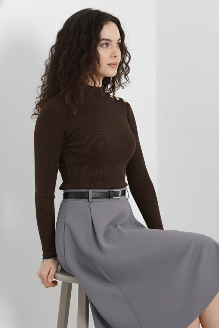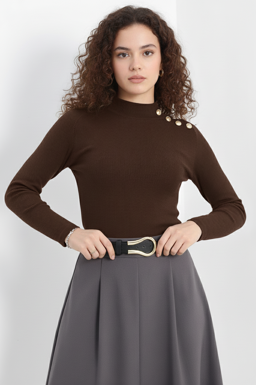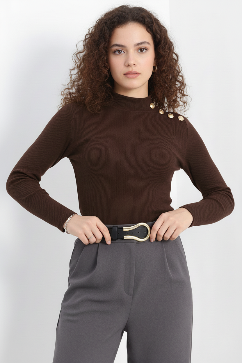 Şıklık ve konforu bir arada sunan Gold Düğmeli Balıkçı Yaka Fitilli Kaşkorse Bluz, gardırobunuzun vazgeçilmez parçalarından biri olmaya aday!