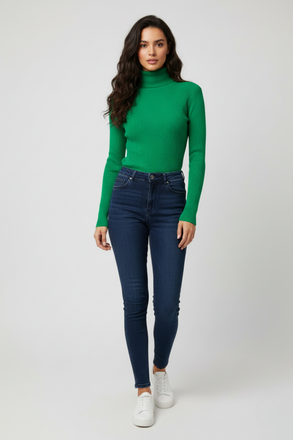 Kadın yeşil boğazlı triko kazak, canlı rengiyle kombininize enerji katar. İnce dokusu ve rahat kesimi ile günlük kullanım için uygundur.